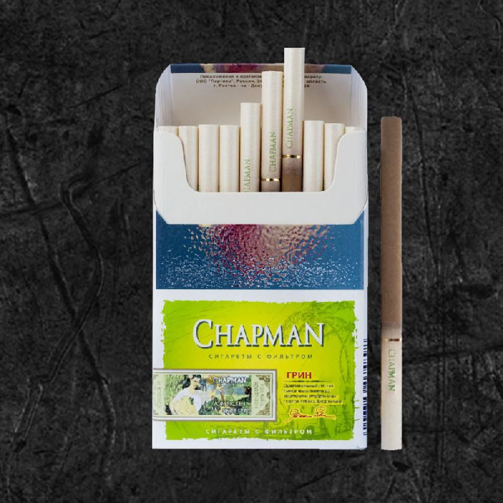 - Стильная упаковка: дизайн пачки сигарет Chapman выполнен в элегантной и минималистичной манере, идеально дополняющей образ современного человека.